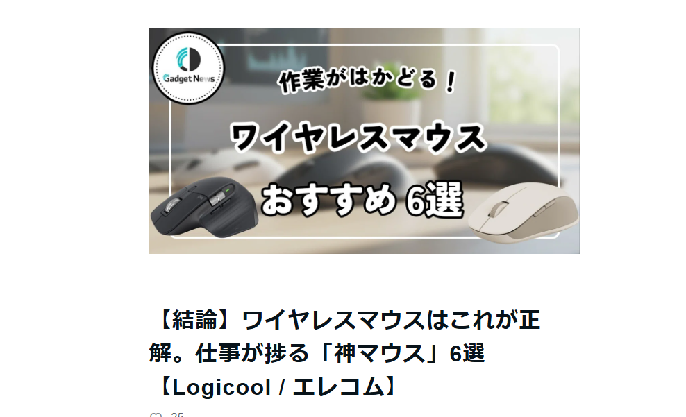 「在宅ワーク8時間使ってみた正直レビュー」や「腱鞘炎持ちの私が選んだマウス3選」といった記事です。