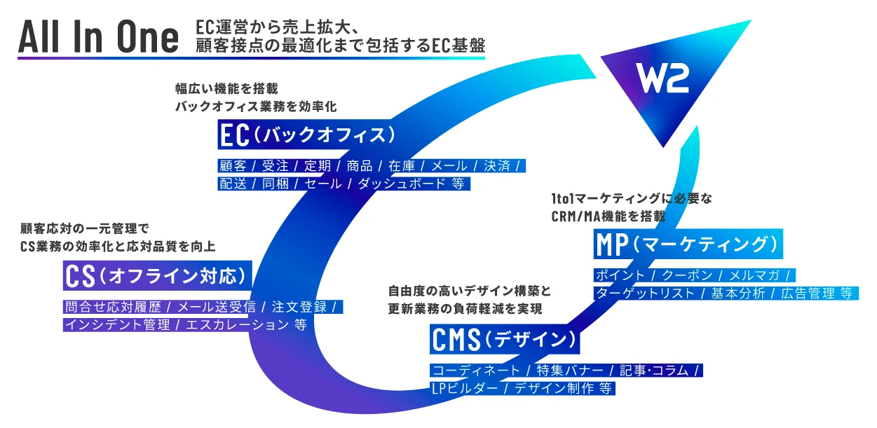 そして、EC運用から販促、顧客管理までを一つの基盤で完結できる点も、W2を選んだ理由の一つです。