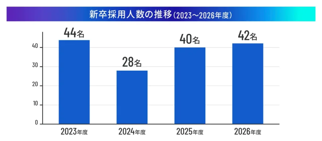 「W2 Student Support System」を軸とした採用活動を継続しています。2026年度は42名を採用し、引き続き採用規模を維持・拡大しています。