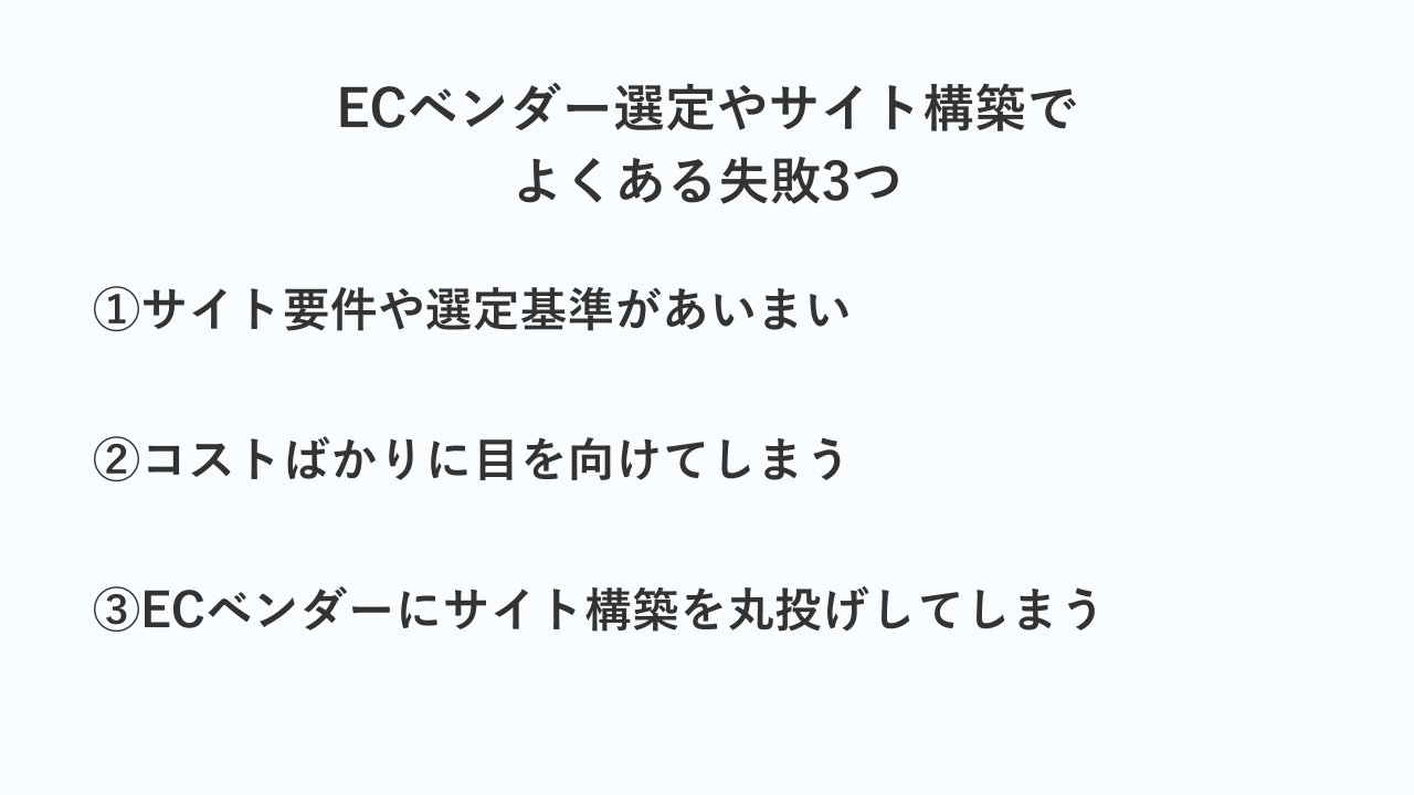 ECベンダー選定やサイト構築でよくある失敗3つ