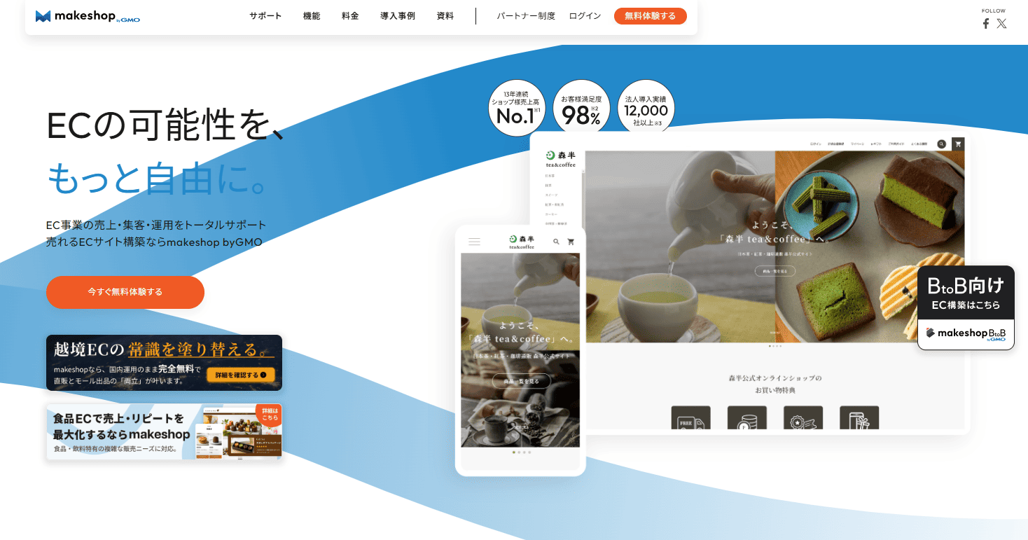 また、単にショップを作るだけでなく「売れる仕組み」の提供に特化しており、専任サポートチームによる手厚いコンサルティングも受けられます。初期費用や月額費用はASP型のサービスと比べて少し高くなりますが、本格的なEC事業で継続的な売上成長を目指す事業者や、すでに一定規模のビジネスを運営している企業にとって、投資対効果の高い選択肢です。