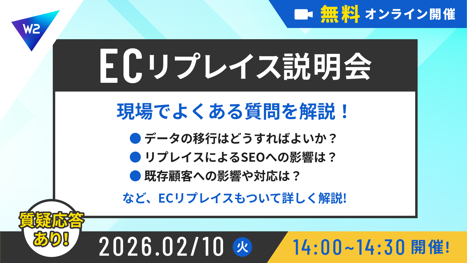 お客様の成功を支えてきたW2がEC構築のノウハウをご紹介。1,100以上の構築実績から導き出した成功するECにするためのここだけの情報をお伝えします。