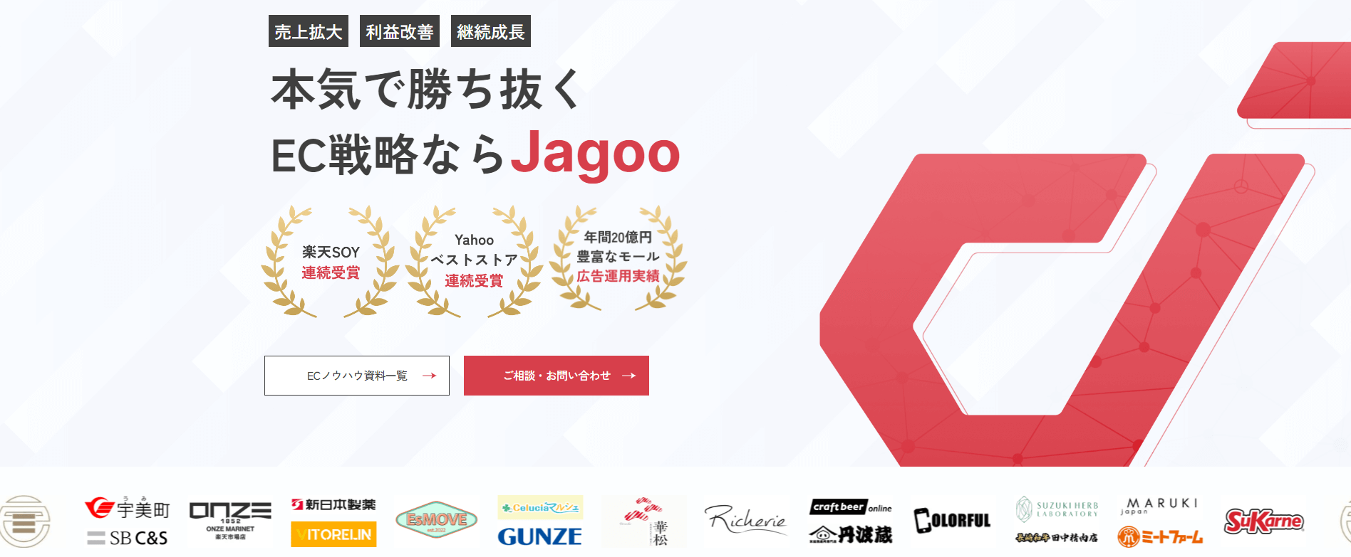 ジャグー株式会社は、売上の拡大や利益の拡大に伴う仕組化に至るまでを『全て実行』するEC戦略・運用のプロフェッショナルとして好評です。