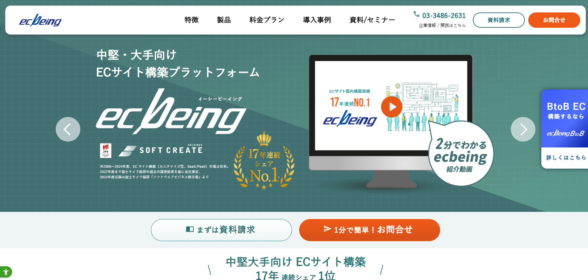 ecbeingは、大手から中堅企業を中心にD2Cを含むECサイト運営をワンストップで提供するサービスです。