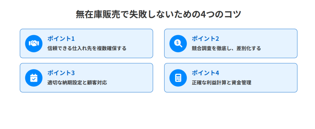 ここでは、無在庫販売を成功させるための重要なポイントを4つ紹介します。