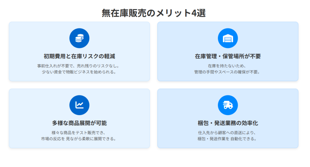1. 初期費用と在庫リスクを最小限に抑えられる