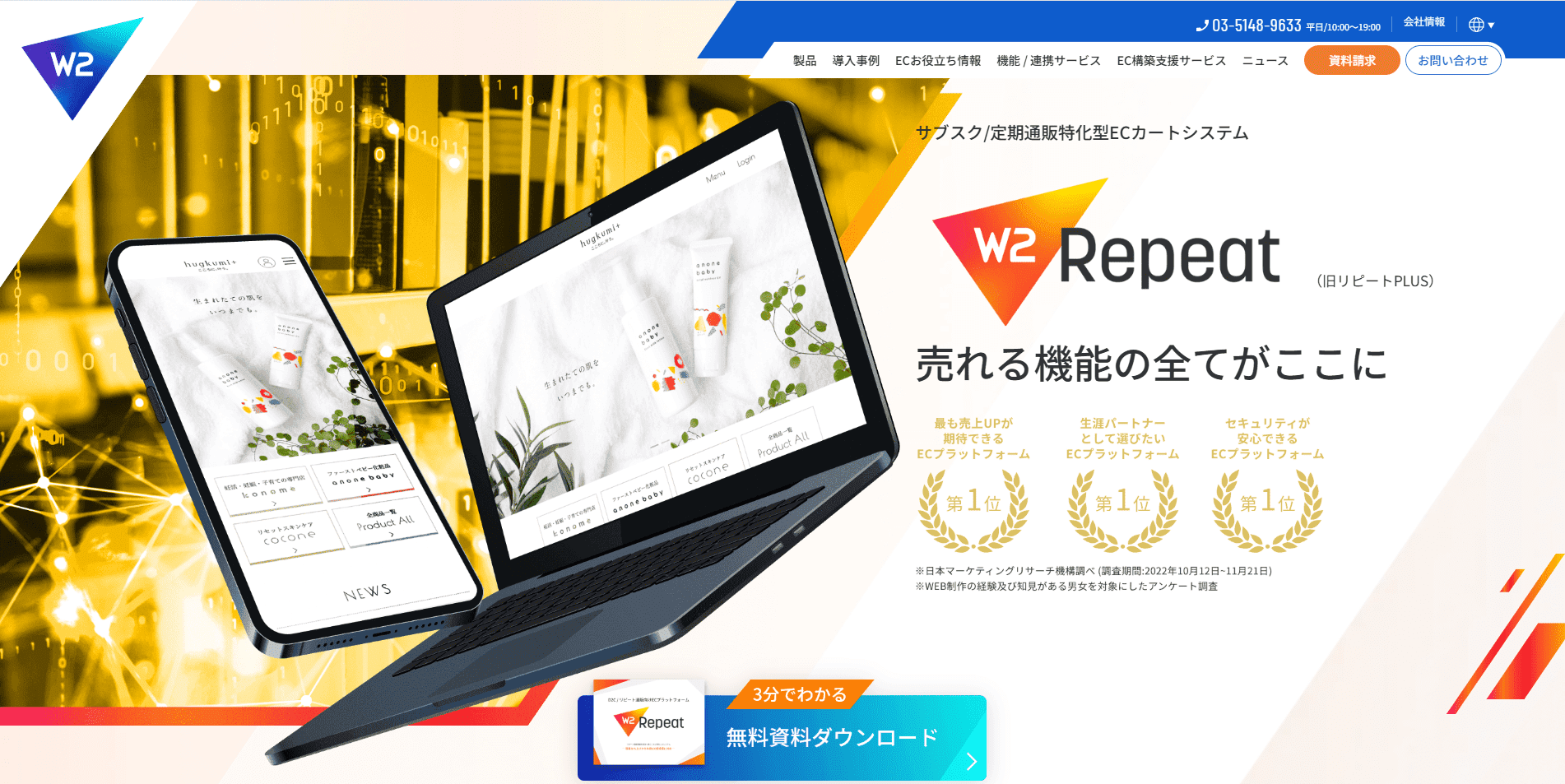 W2株式会社が提供する「W2 Repeat」は、リピート通販・定期通販に特化したECプラットフォームです。F2転換の壁を突破するための機能が豊富に標準搭載されています 。