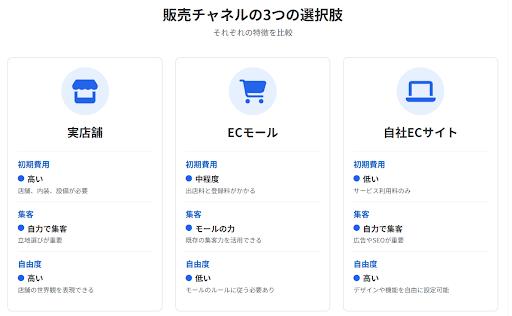 商品をどこで販売するかは、物販ビジネスの根幹をなす重要な選択です。
