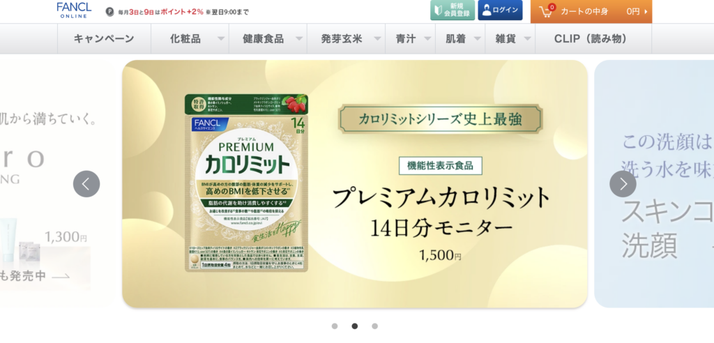 画像参照元:無添加化粧品、健康食品・サプリメントの通販│ファンケルオンライン