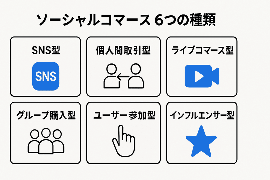 ソーシャルコマースには大きく分けて6つの種類があります。