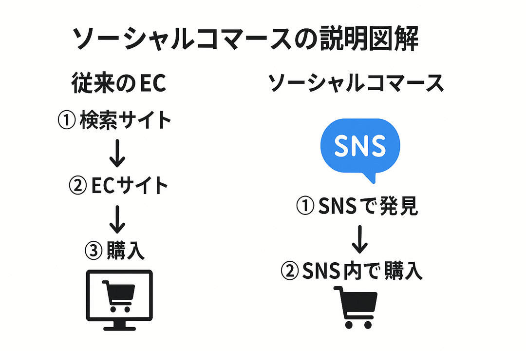 Eコマースとソーシャルコマースの大きな違いは、SNSが果たす役割にあります。