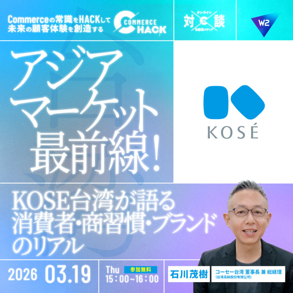 W2ではパートナー企業やクライアント企業をゲストにコマースを加速させるセミナーを開催しています。業界の最新情報や、専門のプロだからわかること、ここでしか聞けない現場の声など、事業を推進するのに必要な情報をお届けいたします。